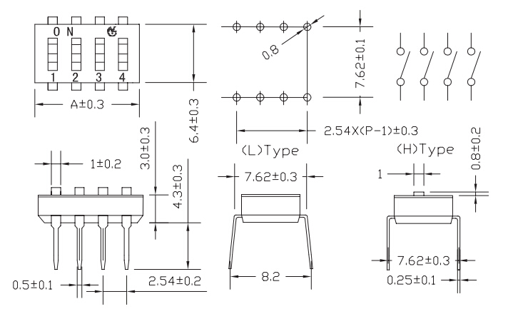 撥碼開關(guān)包裝方式:所有開關(guān)推鈕在包裝時都設(shè)置在" OFF“的位置。